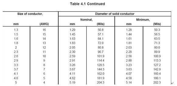 9.线径范围:厂家在做认证时,需要根据自己实际生产能力,提供线径和最小线径的样品至实验室,当然具体被认可的单一线径或者陷阱范围必须是以实测为准。进行导体测量以及绝缘层测量,目前有两种方式:a利用传统方法将每层绝缘层分拨剥离,然后利用千分尺进行测试。b