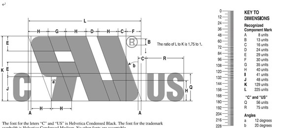 以及UL标志才算完整的UL认证产品,在打印UL标志的时候,这个标志也是有规定尺寸的,